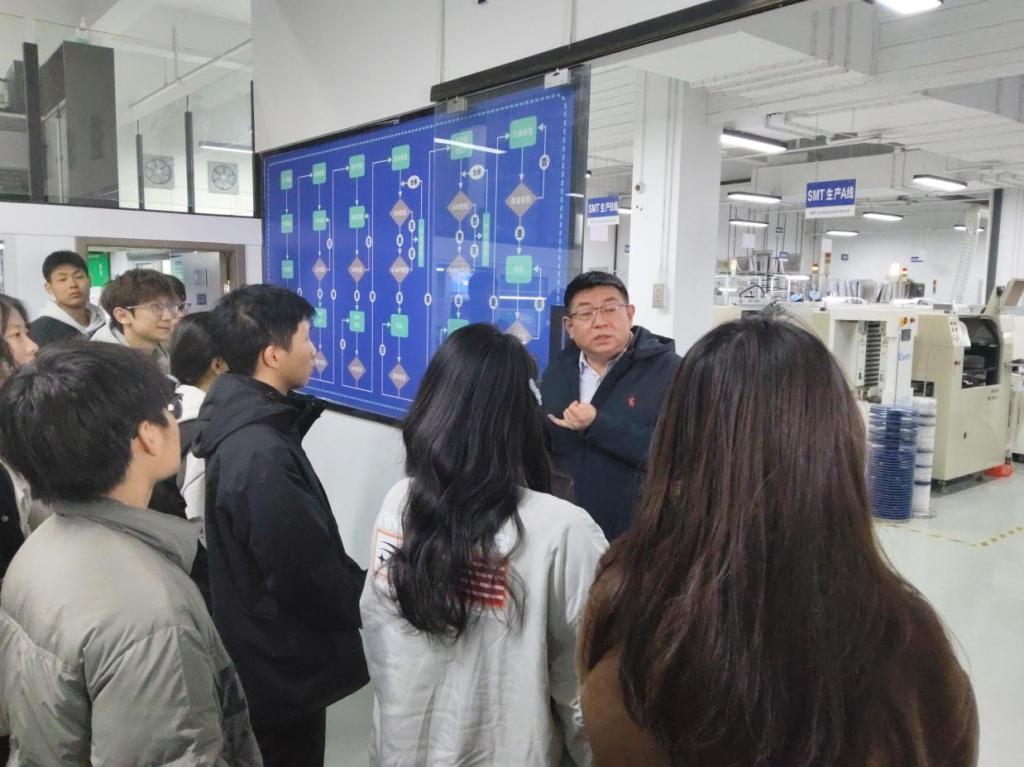 第二站来到华贡电子,同学们深入电子元件生产车间,亲眼见证了电子元件从原材料到成品的全流程生产。随后,企业工程师带来专题分享,不仅系统讲解了软件工程师的职业定位、技能要求与发展路径,更聚焦软件嵌入工程师这一热门岗位,从岗位职责、技术栈储备到行业应用场景进行了细致拆解。干货满满的讲解让同学们对专业细分领域有了清晰认知,也为后续的学习方向提供了明确指引。
