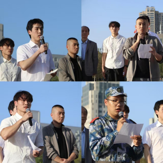 学院三名退伍学生代表依次分享了自己的军旅生涯。计算机科学与技术专升本241班李林轩作为火箭军退役士兵,在服役期间坚决执行了各项发射保障任务。他表示,此段弥足珍贵的军旅记忆,是人生阅历中浓墨重彩的一笔,铸就了自己过硬的身体素质与坚毅的精神品质。计算机科学与技术专升本243班的蔡子健疫情期间在机场全力执行保障任务,他说:“看着战机日夜不间断地呼啸着冲向天际,每一次保障都凝聚着使命,那些忙碌却坚定的时刻,既锤炼了我的专业能力,也让我深刻感受到守护海空的责任与荣耀。”让计算机科学与技术专升本241班王冠斌难以忘记的是2020年前往确山参加实战演习的日子,他表示,那些弥足珍贵的经历和记忆丰富了自己的阅历,练就了自己过硬的体质和品质。计算机科学与技术251班张瑞鑫代表新生分享了自己的军训感受:“军训虽然很累,但我们知道,这是在为我们以后的大学生活打基础。而思政课则让我们更加清晰地认识到,我们的大学学习不仅是为了个人的成长,更是为了社会的进步”。