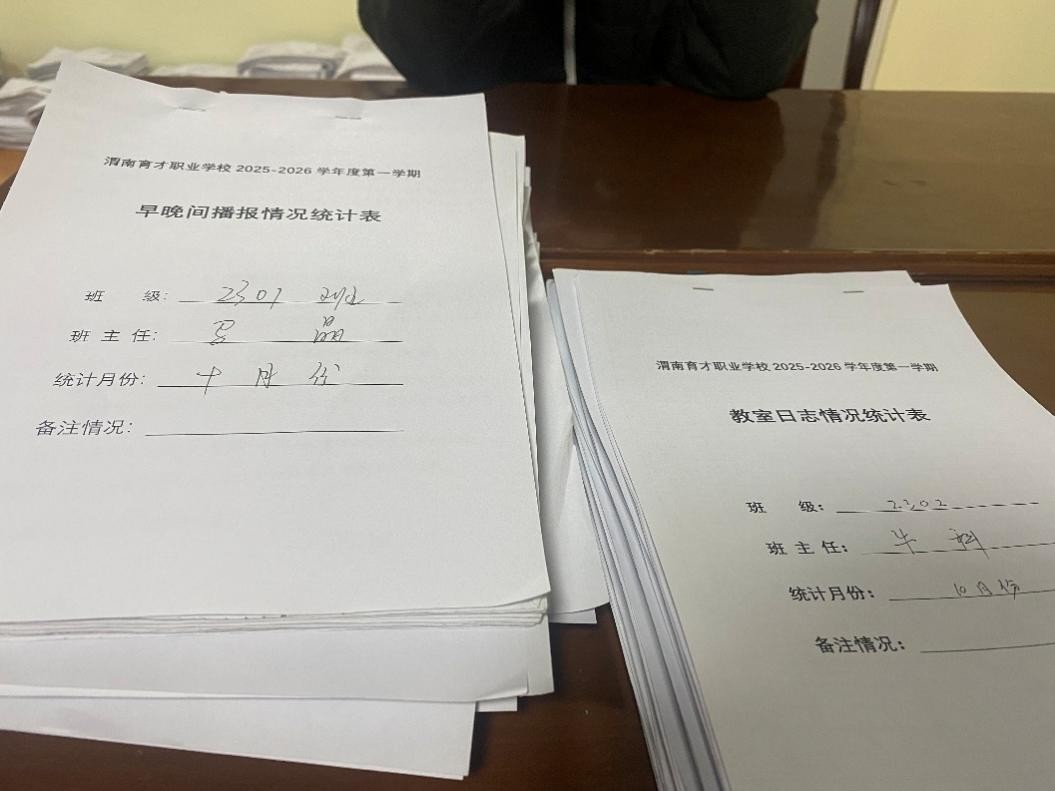 我们还汇总、整理了各班的早晚间播报情况统计表和教室日志情况统计表。我们收集各班的原始数据,仔细核对信息的准确性,然后统计分析并制作成数据真实、格式规范的报表,为学校了解班级动态、优化管理措施提供重要依据。