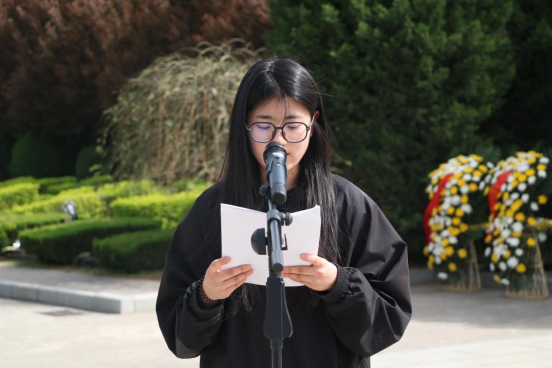 计算机科学与技术专业242班学生入党积极分子张锦航代表发言。她表示,革命先烈以热血与生命铸就和平盛世,新时代大学生党员更应铭记历史、传承红色基因,立足计算机专业深耕学业、锤炼过硬本领,将个人理想融入国家发展,以青春担当助力中国式现代化建设。